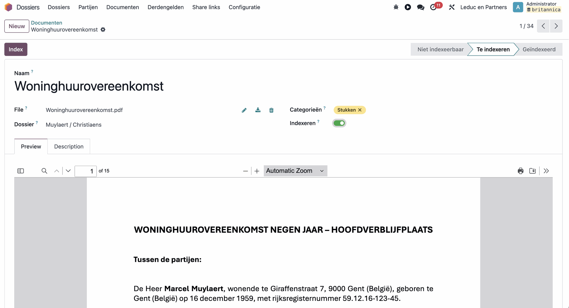 Upload één of meerdere documenten en indexeer ze handmatig.