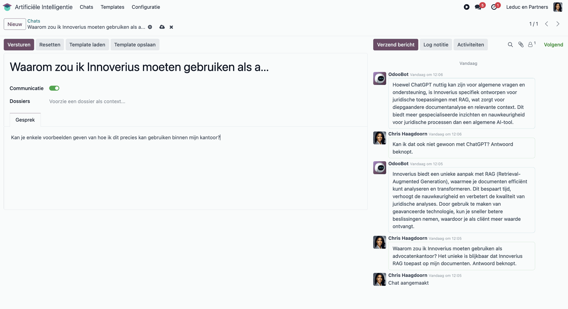 Met behulp van deze tutorial leer je stap voor stap hoe je artificiële intelligentie inzet binnen Innoverius om juridische documenten te genereren, dossiers te analyseren en efficiënter te werken met behulp van Large Language Models (LLM) en Retrieval-Augmented Generation (RAG).